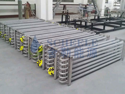 繞片式增壓器,包括散熱管,散熱管中心為流體通道,散熱管外壁有散熱翅片,其特征在于,所述的散熱翅片為螺旋形狀,沿著散熱管徑向分布。本產(chǎn)品提供的增壓器散熱管,由于散熱翅片為螺旋狀的,當增壓器水平放置的時候,所有的翅片處于垂直狀態(tài),表面結(jié)成冰霜會沿著散熱翅片滑落。